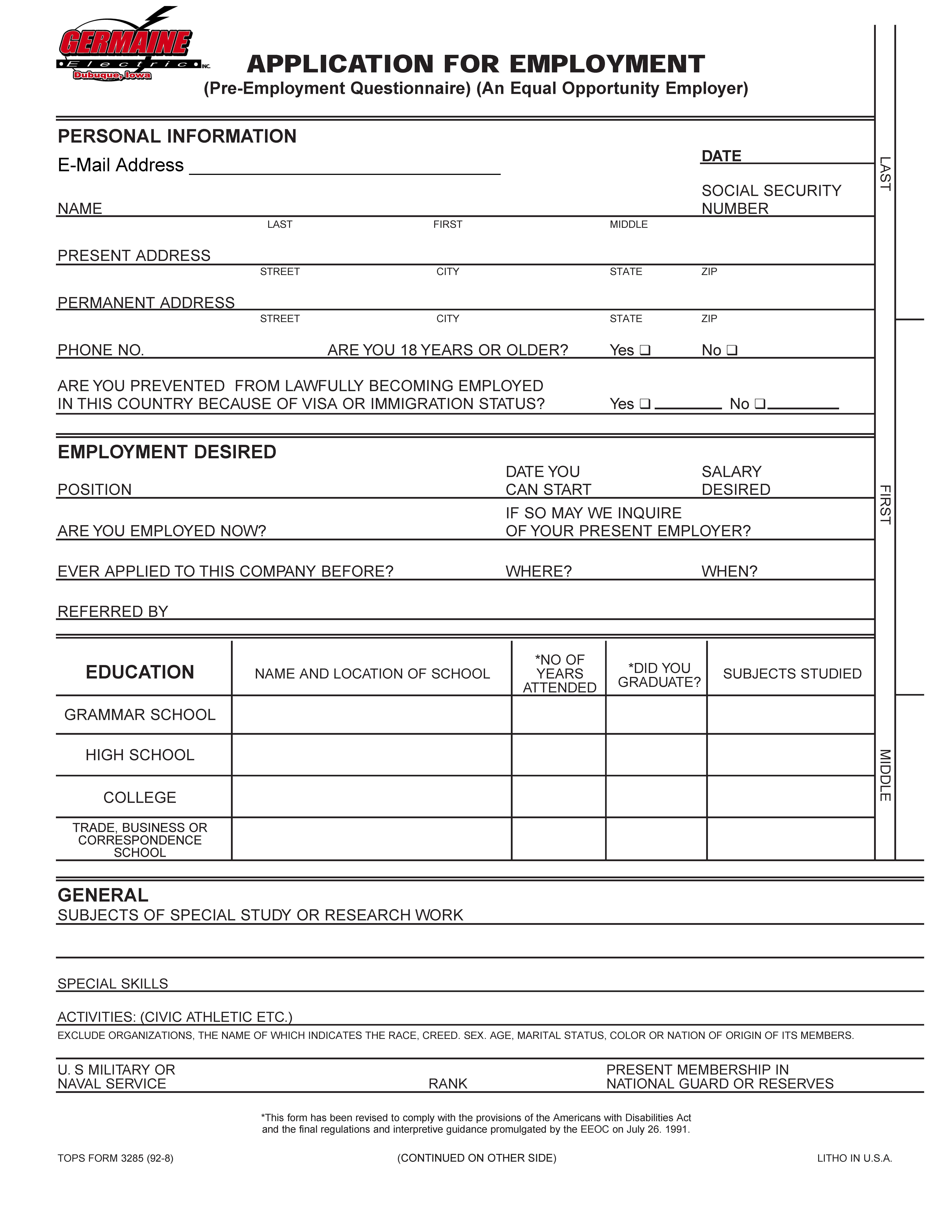 Please click on the two photos below to fill out. Hand it in to our office or email to us at office@germaineelectric.com!
